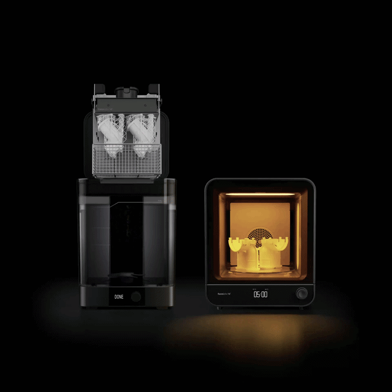 Po tiskanju vstavite delovno ploščo neposredno v napravo Form Wash za enakomerno, avtomatsko izpiranje.